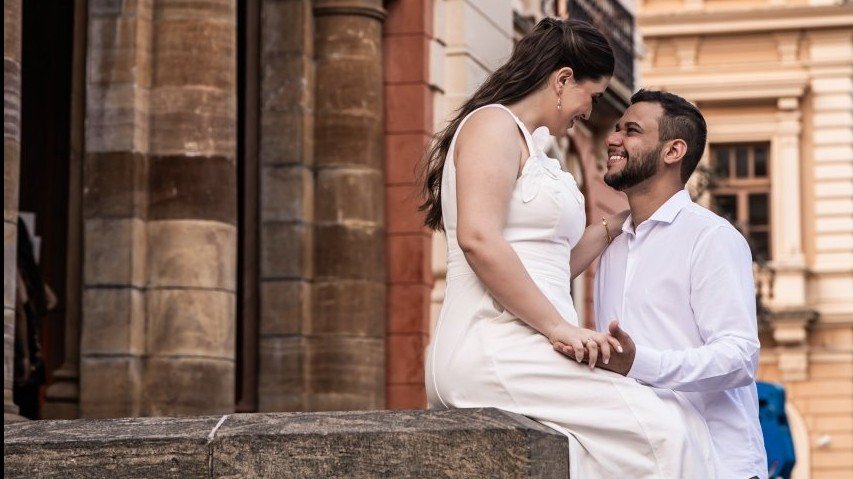 Para nós, o mais importante é que você se sinta confortável para celebrar conosco! Seja casual ou esporte fino, o que esperamos ver estampado em você é o seu sorriso! Apenas pedimos atenção às cores a serem evitadas: amarelo manteiga, reservado às madrinhas, e branco, reservado à noiva.