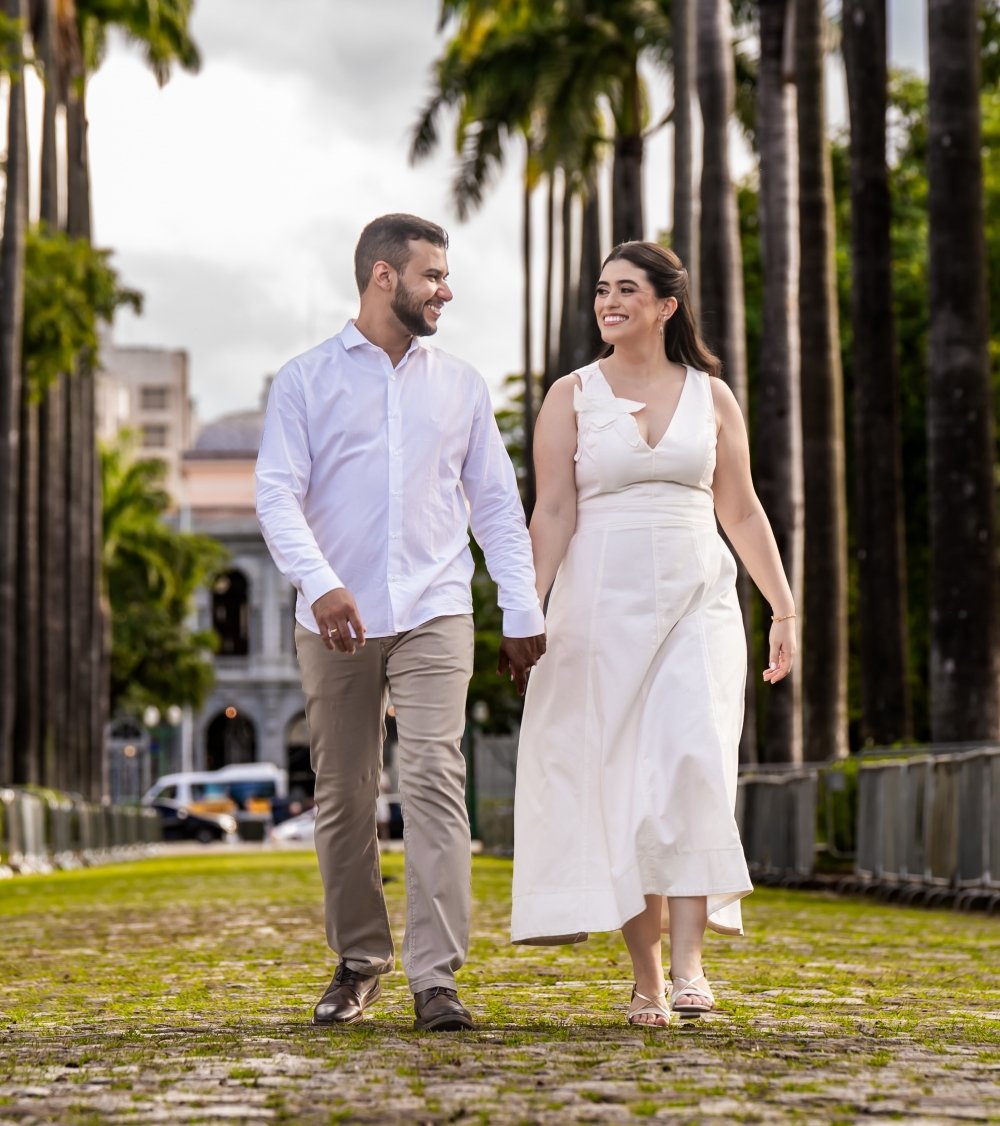 Para nós, o mais importante é que você se sinta confortável para celebrar conosco! Seja casual ou esporte fino, o que esperamos ver estampado em você é o seu sorriso! Apenas pedimos atenção às cores a serem evitadas: amarelo manteiga, reservado às madrinhas, e branco, reservado à noiva.
